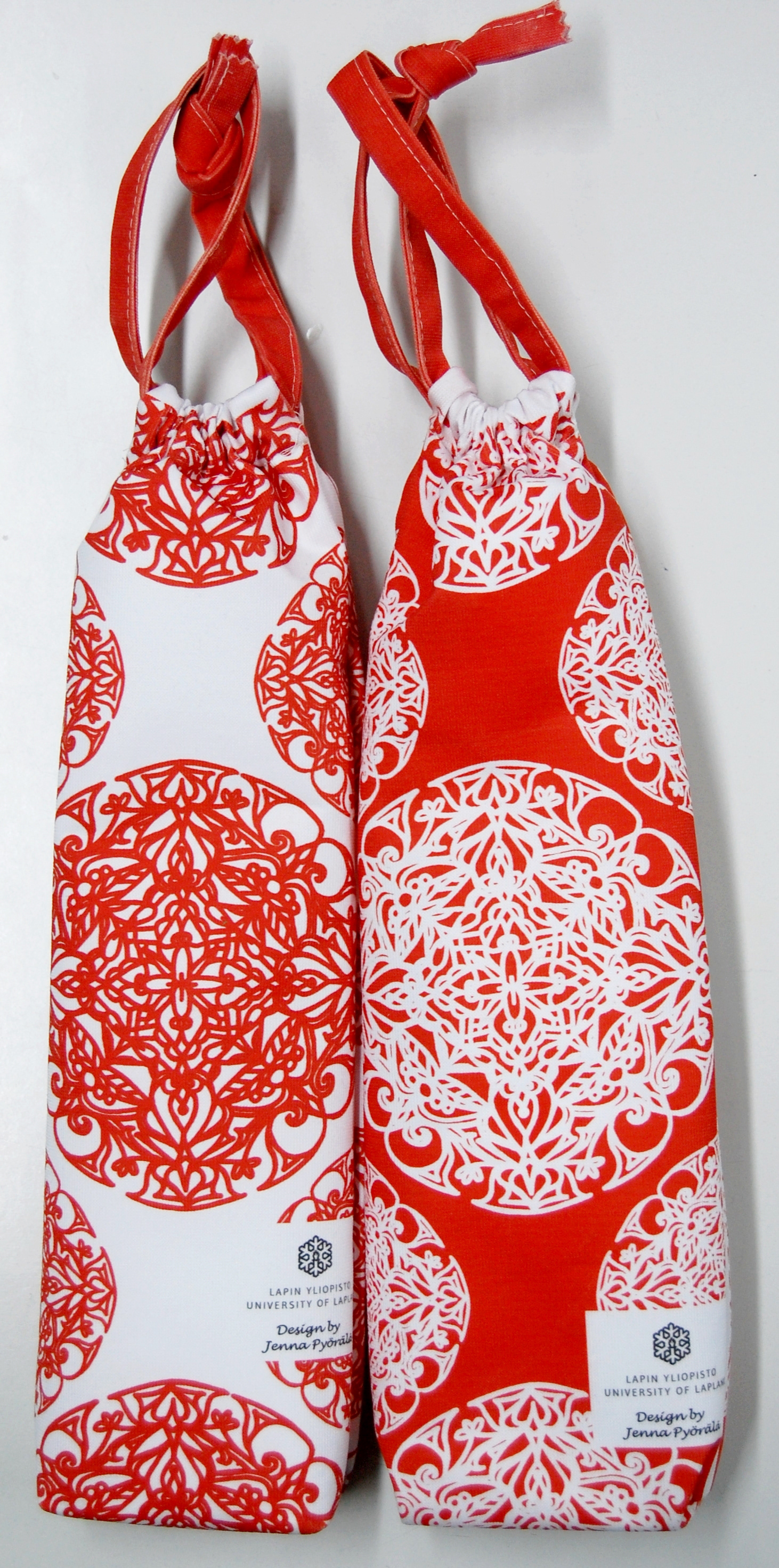 A textile design for a business gift, a wine bottle bag. I wanted to create something elaborate, ornamental and sophisticated under the arctic Christmas theme. A pattern that would be abstract enough to leave room for imagination.