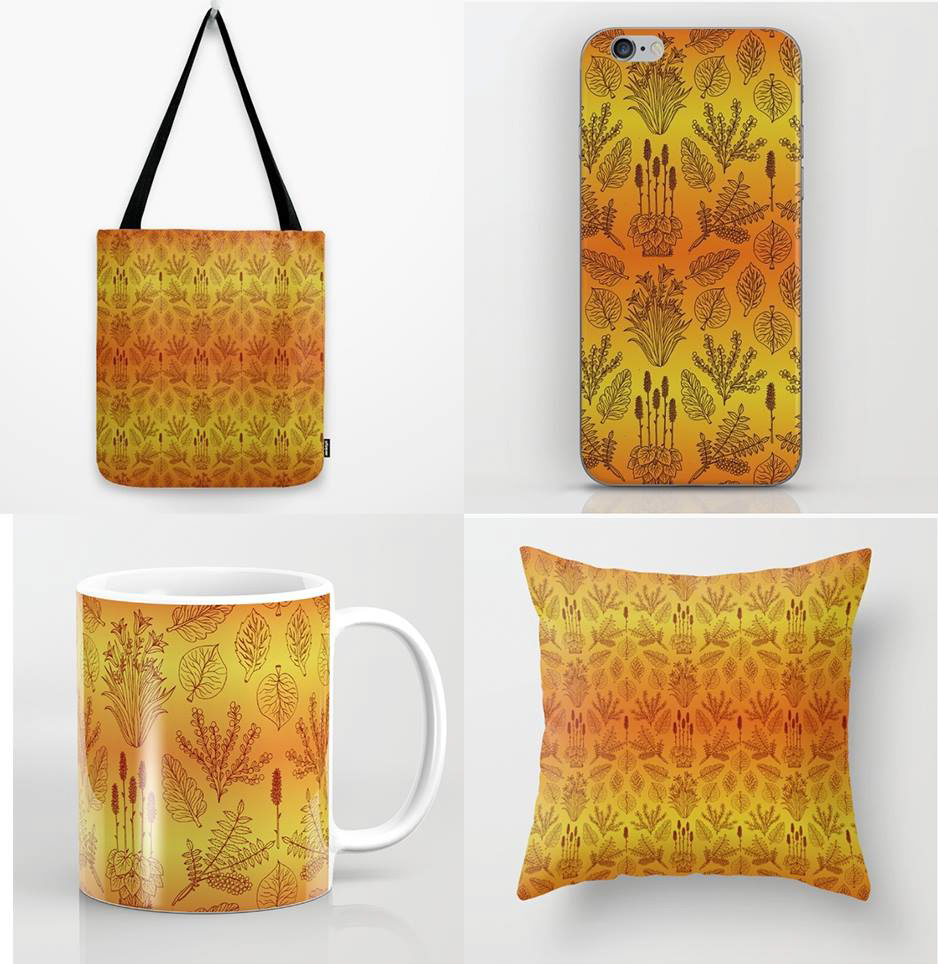 Pattern created autumn 2016 inspired by the season's leaves, plants and vivid colors.